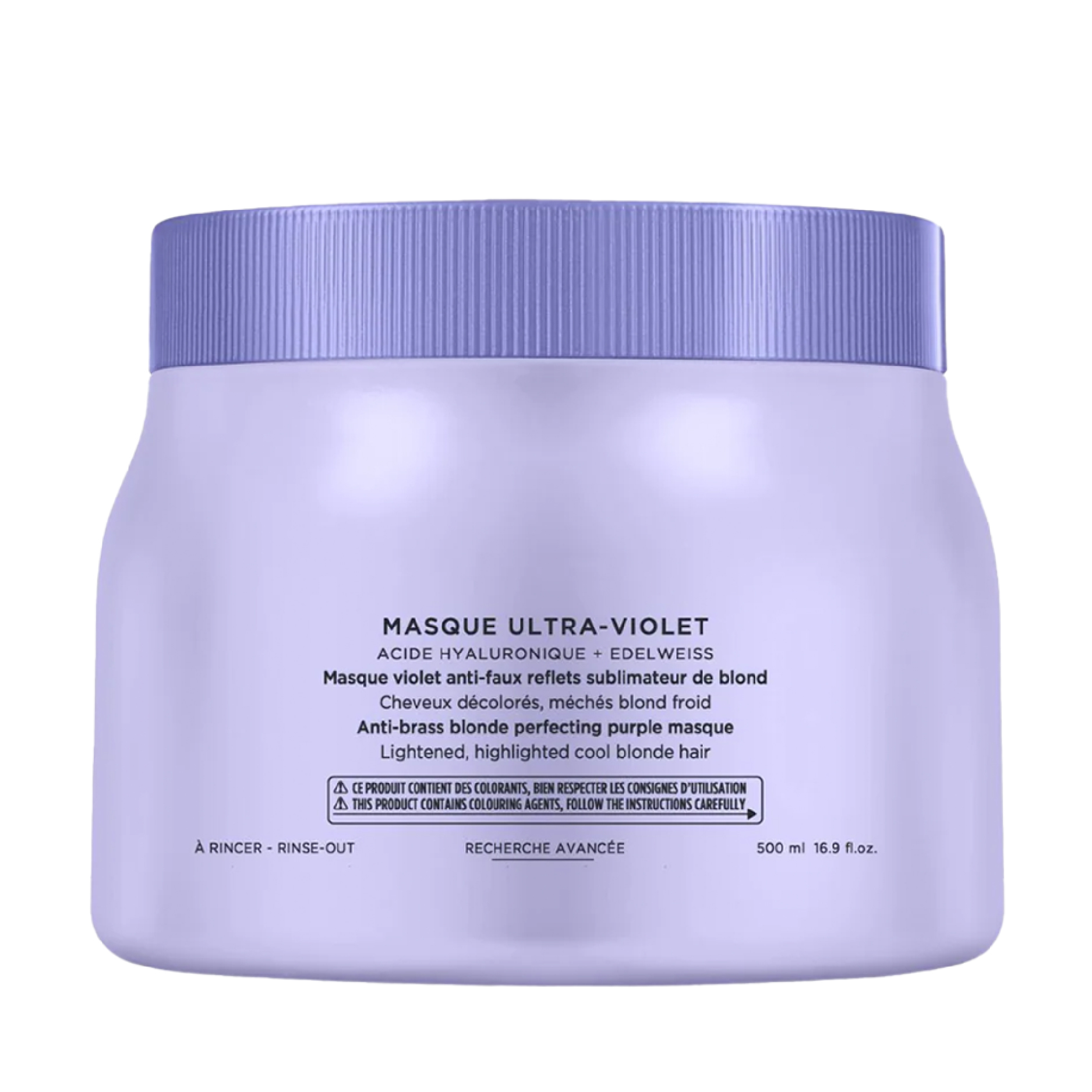 มาส์กที่เหมาะสำหรับผมสีบลอนด์ฟอกขาวที่ต้องการการปรับสภาพให้เป็นกลาง มาส์กสีม่วงนี้จะแทรกซึมเข้าสู่เส้นใย ขจัดทองแดงและโทนสีเหลืองที่ไม่ต้องการ พร้อมทั้งช่วยบำรุงและฟื้นฟูเส้นใยที่ไวต่อความรู้สึก