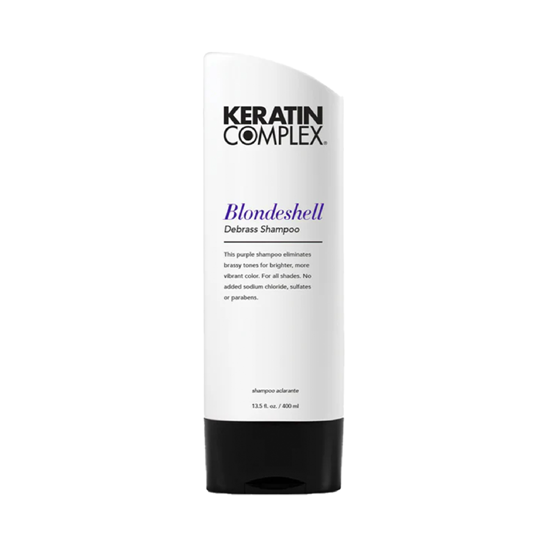 Keratin Complex Blondeshell Debrass Shampoo - Water/Aqua/Eau, Disodium Laureth Sulfosuccinate, Sodium Lauroyl Sarcosinate, Sodium Lauryl Sulfoacetate, Cocamidopropyl Hydroxysultaine, Dimethicone, Hydrolyzed Vegetable Protein PG-Propyl Silanetriol, Persea Gratissima (Avocado) Oil, Olea Europaea (Olive) Fruit Oil, Silk Amino Acids, Keratin Amino Acids, Hydrolyzed Keratin, Butylene Glycol, Sodium Lauroyl Lactylate, Glyocl Distearate, Panthenol, Amodimethicone, Cetrimonium Chloride, Trideceth-12, Cyclopentasiloxane, Dimethiconol, Divinyldimethicone/Dimethicone Copolymer, C12-13 Pareth-23, C12-13 Pareth-3, Polyquatermium-10, Sodium PCA, Quaternium-80, Poly-quaternium-7, Cinnamidopropyltrimonium Chloride, PEG-150 Pentaerythrytyl Tetrastearate, PEG-6 Caprylic/Capric Glycerides, Lavandula Angustifolia (Lavender) Extract, Chamomilla Recutita (Matricaria) Flower Extract, Camellia Sinensis Leaf Extract, Citric Acid, Phenoxyethanol, Caprylyl Glycol, Chorphenesin, CI 17200 (Acid Red 33), CI 60730 (Acid Violet 43), Linalool, Coumarin, Geraniol, Limonene, Fragrance/Parfum.