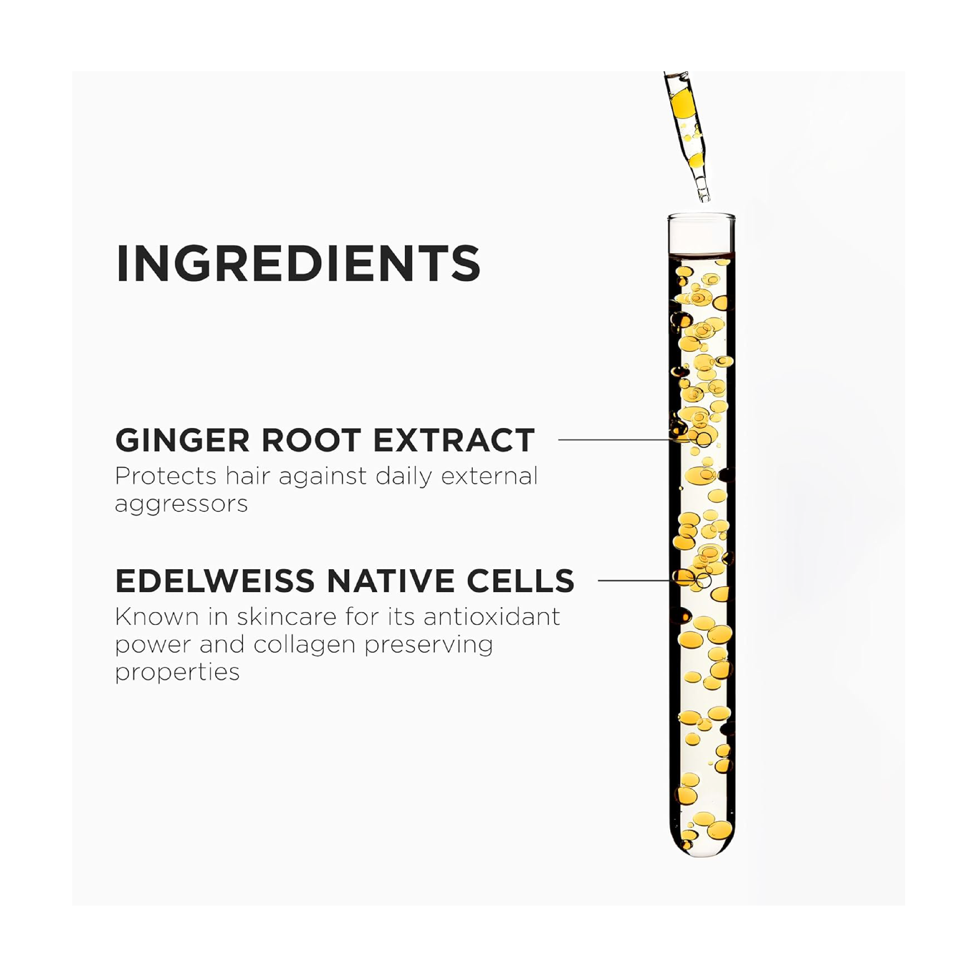 คืนความชุ่มชื่น ช่วยทำความสะอาดสิ่งสกปรกตกค้างได้อย่างหมดจด ช่วยลดการขาดหลุดร่วงของเส้นผมอ่อนแอ ฉีกขาดง่าย ในระยะเริ่มต้น ผมนุ่มลื่น หวีง่ายไม่พันกัน ด้วยส่วนผสมจากสารสกัด ของขิงดาร์มากัสก้า และ ดอกเอเดลไวส์ ช่วยต่อต้านอนุมูลอิสระ เติมเต็มคอลลาเจนให้เส้นใยผมแข็งแรง ยืดหยุ่นมีสปริง ไม่หลุดร่วงขาดง่าย