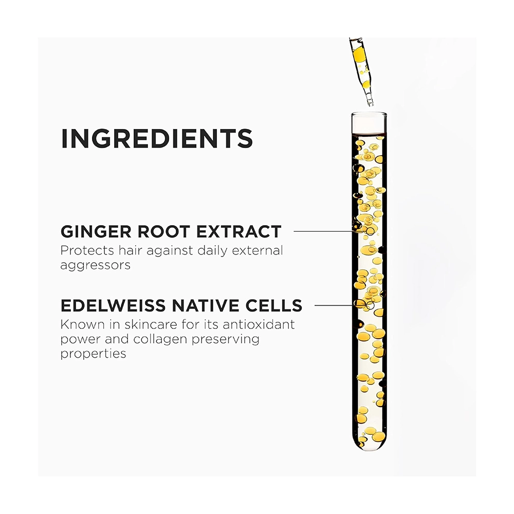 คืนความชุ่มชื่น ช่วยทำความสะอาดสิ่งสกปรกตกค้างได้อย่างหมดจด ช่วยลดการขาดหลุดร่วงของเส้นผมอ่อนแอ ฉีกขาดง่าย ในระยะเริ่มต้น ผมนุ่มลื่น หวีง่ายไม่พันกัน ด้วยส่วนผสมจากสารสกัด ของขิงดาร์มากัสก้า และ ดอกเอเดลไวส์ ช่วยต่อต้านอนุมูลอิสระ เติมเต็มคอลลาเจนให้เส้นใยผมแข็งแรง ยืดหยุ่นมีสปริง ไม่หลุดร่วงขาดง่าย