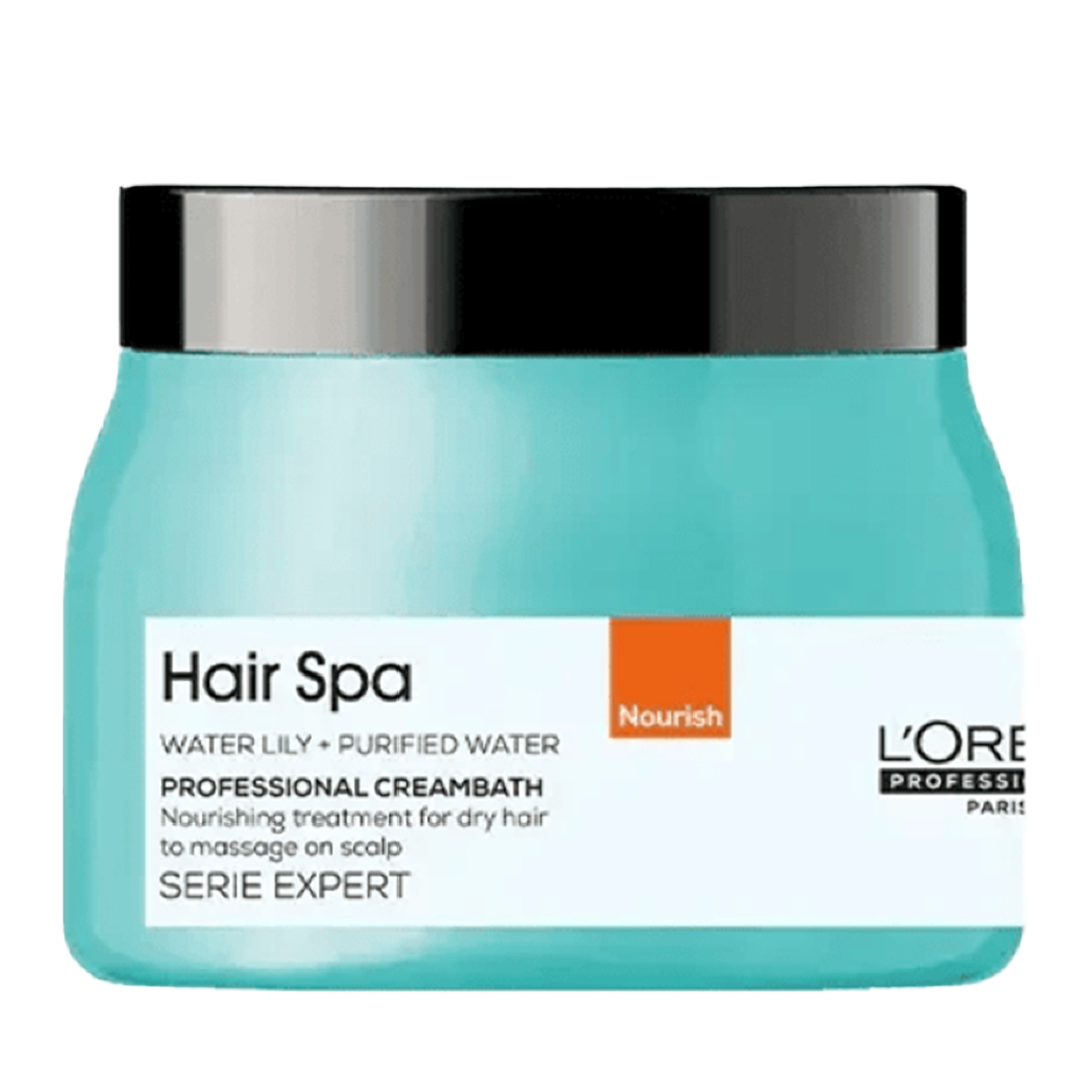ทรีทเม้นท์สำหรับผมที่แห้ง ขาดการบำรุง ออกแบบมาโดยเฉพาะสำหรับผมแห้งและอุดมด้วยส่วนผสมที่ช่วยดูแลเส้นผม เช่น ดอกลิลลี่น้ำและน้ำบริสุทธิ์ เพื่อบำรุงเส้นผมของคุณอย่างเข้มข้นจากภายนอกและจากแกนกลาง เนื้อครีมเข้มข้น เนื้อครีม และทึบแสงของ L'Oréal Professionnel Hair Spa Creambath ช่วยบำรุงเส้นผมอย่างสูงสุดและบรรเทาหนังศีรษะเมื่อใช้อย่างเหมาะสม ดื่มด่ำไปกับเซสชั่นสปาผมแบบมืออาชีพด้วย L'Oréal Professionnel Creambath ที่ช่วยบำรุงและบำรุงเส้นใยผมอย่างล้ำลึก เพื่อให้คุณสามารถอวดผมสุขภาพดี นุ่ม ชุ่มชื้นและเป็นเงางาม