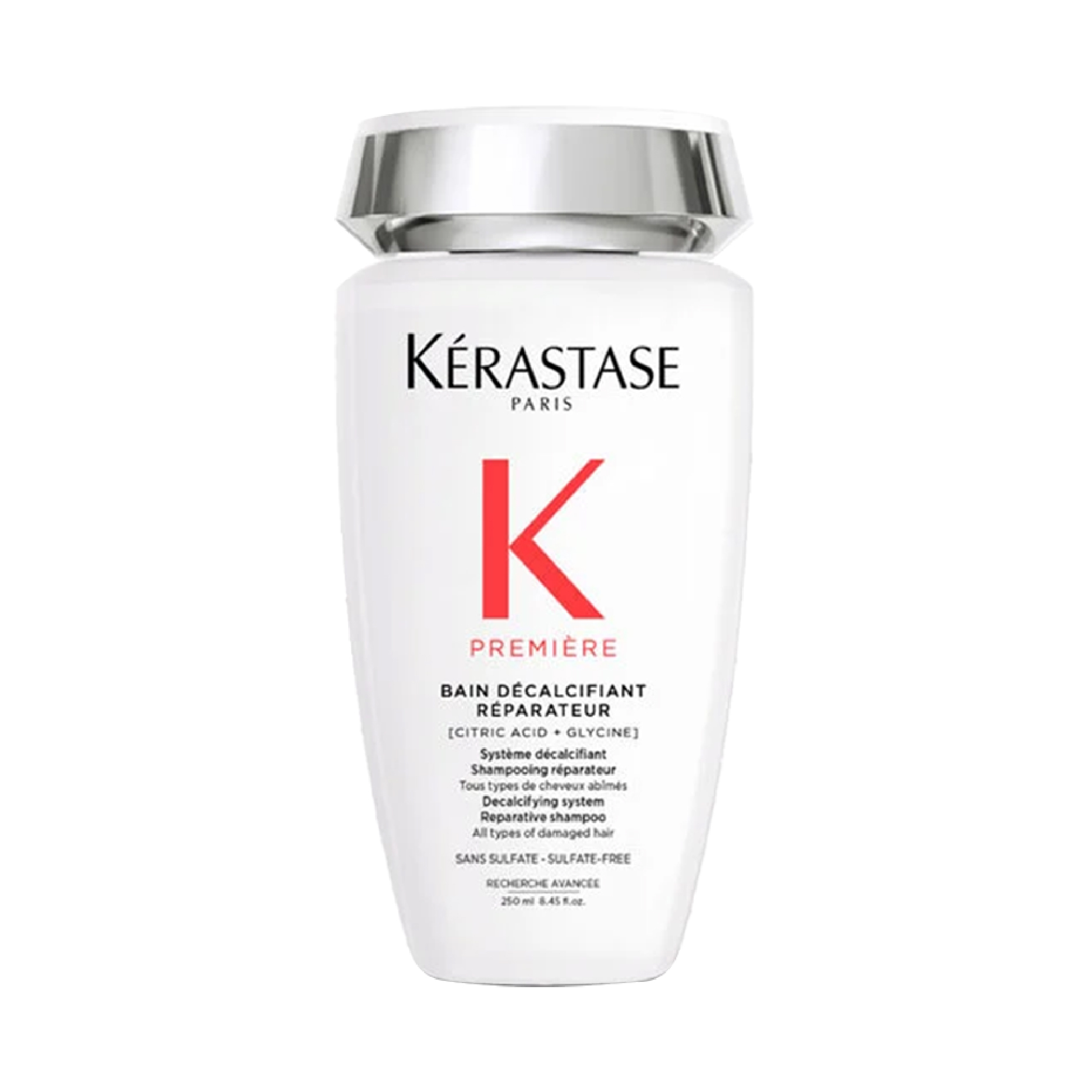 ทรีทเม้นต์ Kérastase Bain Décalcabilité Réparateur เป็นแชมพูซ่อมแซมผมเสียที่ปราศจากซัลเฟตสำหรับผมเสีย แชมพูเข้มข้นที่ทำงานทั้งภายในและภายนอกเพื่อขจัดแคลเซียมและเสริมสร้างและซ่อมแซมเส้นผมที่เสียหาย