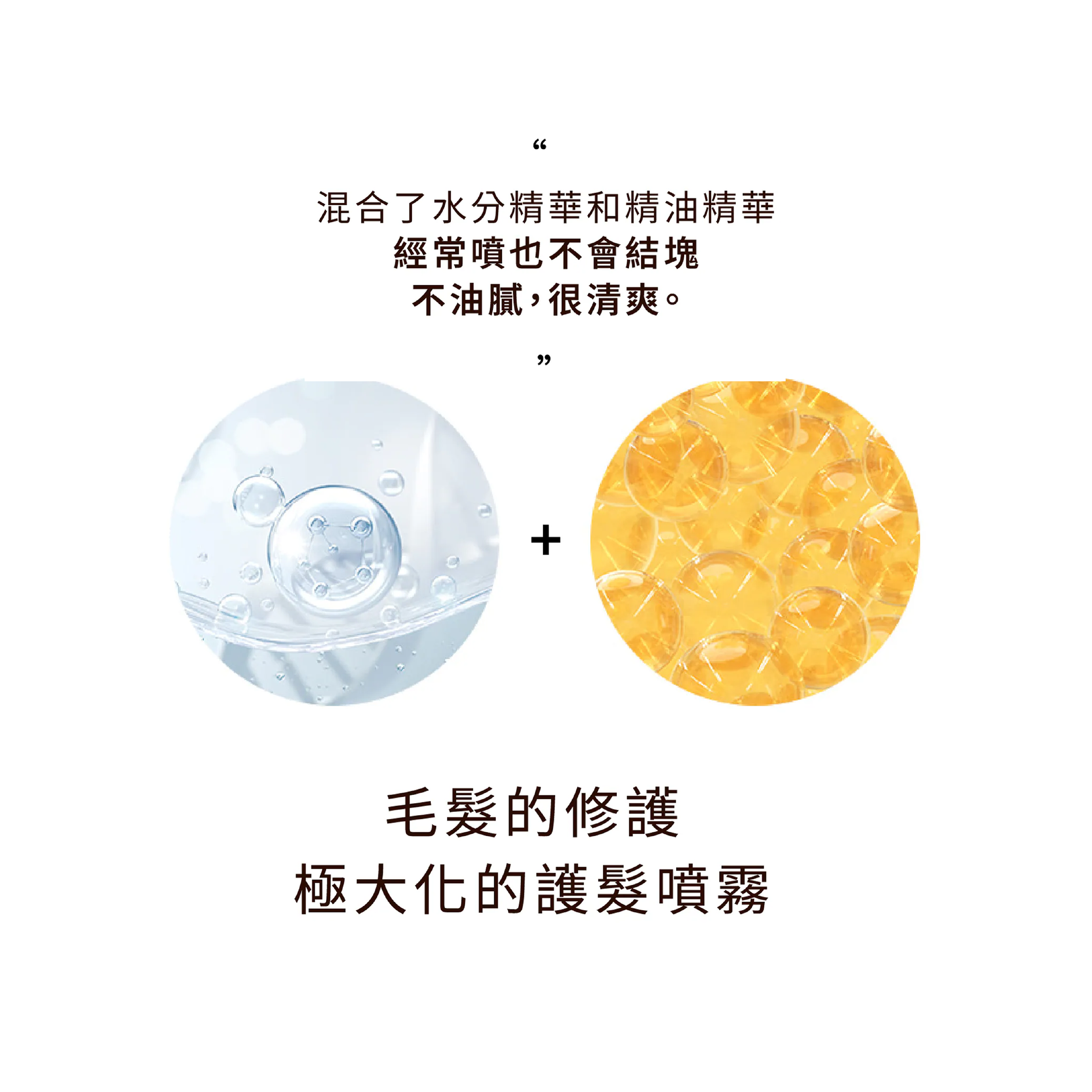 สเปรย์ทรีทเม้นท์ บำรุงผมชนิดไม่ต้องล้างออก ก่อน และหลังจากการไดร์ สามารถใช้ได้บ่อยเท่าที่ต้องการ (โดยไม่จำเป็นต้องสระผมก่อน) ช่วยก่อฟิลม์ป้องกันเส้นผมจากมลภาวะต่างๆ ช่วยเพิ่มความเงางามให้กับเส้นผม โดยมีส่วนผสมจากพืชเป็นหลัก มีส่วนผสมคอลลาเจน Panthenol